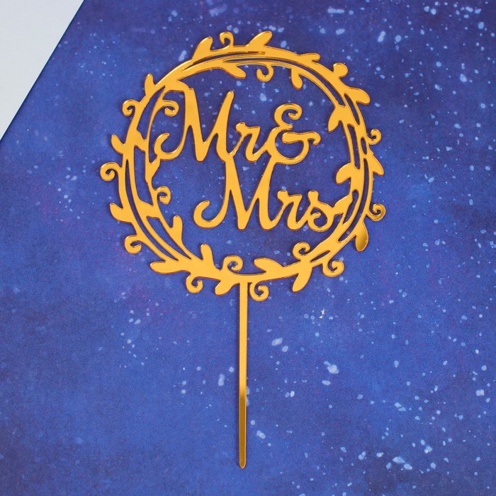 Топпер "Mr&Mrs в " венок, цвет золото