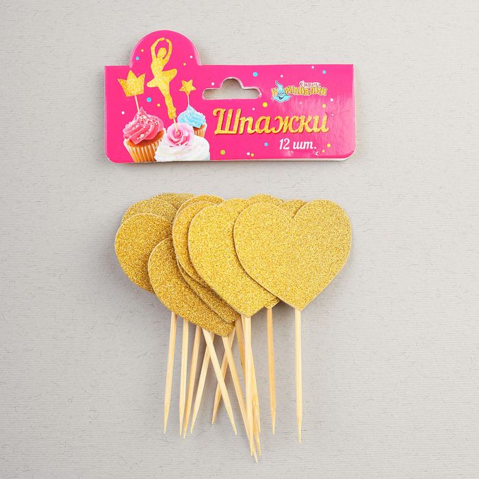 Шпажки для канапе "Сердце золото" (набор 12 шт)